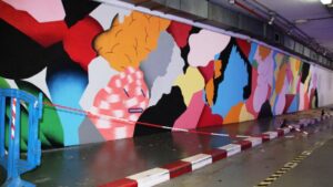 El artista Gri Face está pintando un mural en el acceso al aparcamiento subterráneo de Marquès de la Sènia por el Paseo Marítimo en el marco de una iniciativa de la Sociedad Municipal de Aparcamientos y Proyectos (SMAP) de Palma. 155