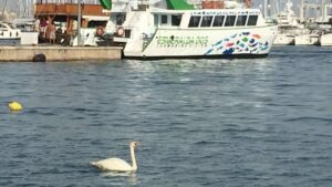 Un precioso ejemplar de cisne blanco está causando sensación al verlo campar a sus anchas por el puerto del Passeig Marítim de Palma. 344