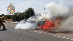 Un turismo se ha incendiado a las 16:00 horas de la tarde del domingo en la carretera de Sineu, según han informado los Bomberos de Palma. 275