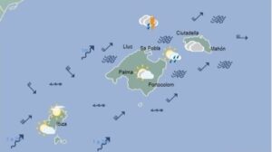 La Agencia Estatal de Meteorología (Aemet) pronostica para este lunes cielos cubiertos predominando las nubes medias y altas, con algún chubasco ocasional acompañado de barro, en Menorca y norte de Mallorca. 346