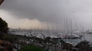La Aement mantiene la alerta naranja para este domingo en Baleares. El pronóstico es de precipitaciones localmente fuertes o muy fuertes, persistentes y con tormenta. Rachas de viento de hasta 80 km/h. 804
