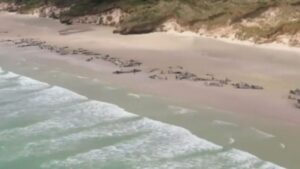 Casi 150 ballenas piloto han muerto tras quedar varadas en Mason Bay, una bahía de la isla sur de Nueva Zelanda. 542
