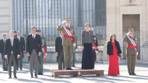 El rey Felipe VI ha ensalzado este domingo el papel de la bandera como símbolo del conjunto de la nación española, su «soberanía, independencia, unidad e integridad»; así como ha reconocido el compromiso de las Fuerzas Armadas con los «valores democráticos» recogidos en la Constitución. 92
