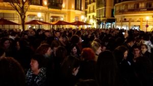 Cientos de personas han abarrotado esta tarde la plaza de Cort de Palma, convocadas por el Movimiento Feminista de Mallorca y otras plataformas, con el lema «No retrocedamos ante la amenaza machista, solidaridad con las compañeras andaluzas, no al pacto machista Vox-PP-Cs». 459