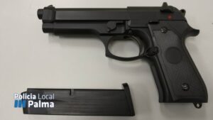 La Policía Local de Palma ha denunciado a un individuo que llevaba una pistola de juguete y realizaba ostentación de esta arma en algunos lugares públicos de la zona de Gomila. 1.732