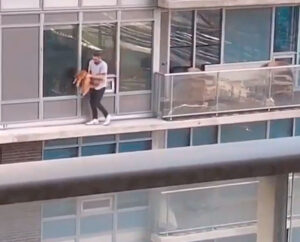Ésto es amor por su gato y lo demás, tonterías. Un hombre sale del balcón de su apartamento, una sexta altura, para rescatar a su gato. 512