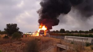 El fuego devoró el autobús en cuestión de minutos sin que nadie pudiera hacer nada para evitarlo. Estas son las imágenes y vídeo del incidente ocurrido este sábado en la autopista de Inca, a las que ha tenido acceso mallorcadiario.com. 2.647