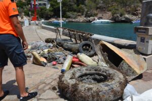 La agrupación de Protección Civil de Santanyí ha retirado un total de 1.105 quilos de residuos del fondo marino del puerto de Cala Figuera, una limpieza que como cada año, se lleva en el marco de las Fiestas de la Virgen del Carmen, que se celebran este sábado. 196