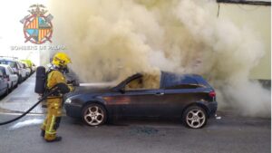 Los Bomberos de Palma han intervenido esta tarde para extinguir el fuego que se ha iniciado en un coche estacionado en la calle Cortecera de Palma. 192