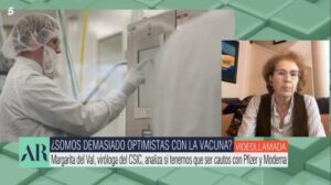Margarita del Val, viróloga del CSIC, ha intervenido en ‘El programa de Ana Rosa’ para hablar sobre las vacunas de Pfizer y Moderna, 2 de las farmacéuticas que han confirmado que las candidatas a vacuna que están desarrollando contra el coronavirus tienen un 90 y un 95% de eficacia, respectivamente. 509
