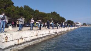 Salvem Portocolom ha organizado este sábado una cadena humana en la que han participado, según la entidad, más de 600 personas, que han reclamado que la restauración del Moll de sa Duana se haga «respetando el patrimonio». 100