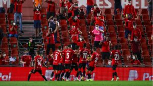 El Mallorca tiene un pie y medio en Primera División tras derrotar 2-0 al Alcorcón en el estadio Son Moix con 4.086 eufóricos espectadores en las gradas que ya han empezado a celebrar el ascenso. 741