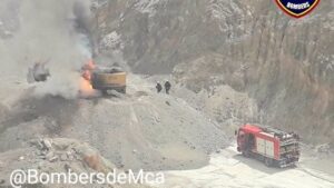 Los Bomberos de Mallorca se han movilizado este martes para sofocar un incendio en una excavadora de una gravera en el término municipal de Son Servera. 70