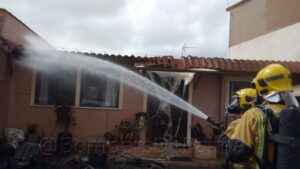 Efectivos de los Bomberos de Palma han actuado este viernes en el incendio que ha afectado a una caravana, utilizada como vivienda, en la urbanización de Son Oliver, en s’Aranjassa. 324