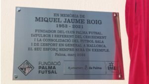 El Ayuntamiento de Palma y el Palma Futsal han rendido este jueves homenaje al fundador del club, Miquel Jaume, con una placa instalada en la fachada del Palacio Municipal de Deportes de Son Moix un año después de su fallecimiento. 55