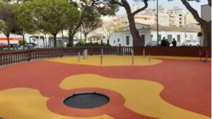 La nueva zona de juegos de la plaza de Santa Elisabeth, en el barrio palmesano de Els Hostalets, ha estrenado una cama elástica circular y un juego interactivo con consola. 195
