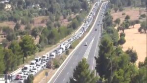 Un accidente múltiple, con cuatro vehículos implicados, en la autopista de Ponent (Ma-1-Palma-Andratx) está provocando, este lunes por la tarde, casi siete kilómetros de retenciones en esta vía, en sentido a la capital balear. 1.139