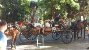 Las altas temperaturas no son impedimento para que las galeras de caballos sigan circulando por las calles de Palma. Y lo hacen con total libertad, puesto que el TSJ tumbó la ordenanza que iba a impedir que prestaran servicio cuando hubiera alerta por calor. 869