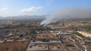 Un total de cuatro dotaciones de los Bomberos de Mallorca, apoyados por efectivos del Ibanat y de los Bomberos de Palma, han actuado en el incendio declarado este lunes por la tarde en Marratxí, concretamente en un emplazamiento situado a escasa distancia del camino de sa Cabana, en es Pont d’Inca. 431