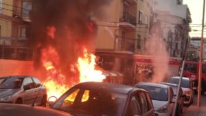 Nuevo incendio de contenedores en Palma, esta vez en pleno centro de la ciudad, concretamente en la calle Bisbe Maura, a pocos metros del Parc de ses Estacions. Según parece, el origen podría haber sido fortuito. 870