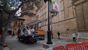 El área de Infraestructuras y Accesibilidad del Ayuntamiento de Palma, a través del servicio de alumbrado, ha iniciado este martes la instalación de las primeras columnas ornamentales del nuevo alumbrado de la Seu, concretamente las cuatro columnas situadas en la plaza de l’Almoina. 70