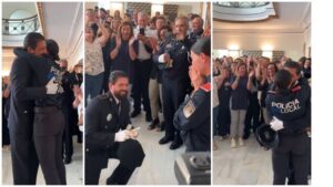 De película. Un recién graduado Policía Local le ha pedido matrimonio a su novia delante de compañeros, jefes y miembros del Govern. 593