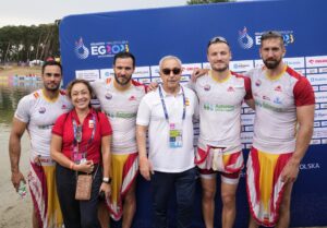 El K4 500 masculino español, con el mallorquín Marcus Walz, conquistó este viernes la medalla de oro en la modalidad de piragüismo sprint durante la tercera jornada de los Juegos Europeos de Cracovia, donde Pablo Graña y María Corbera se colgaron el bronce en las pruebas de C1 200 masculino y femenino, respectivamente. 113