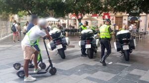 La Policía Local de Palma interpuso este pasado martes 47 denuncias a patinetes y similares en la Plaza de España. 811