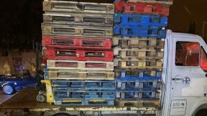 Dos hombres están siendo investigados tras ser pillados robando en un almacén de un supermercado en la calle Gabriel Alzamora, cargando un camión con palets y una transpaleta, con el que se dieron a la fuga a gran velocidad y con las luces apagadas. 199