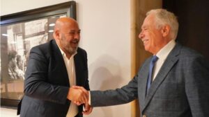 El alcalde de Palma, Jaime Martínez, y el primer teniente de alcalde de Turismo y Cultura, Javier Bonet, se han reunido este viernes con Camilo José Cela Conde para informarle, de primera mano, que el próximo galardón de novela en castellano de los Premis Ciutat de Palma llevará el nombre de su padre. 89