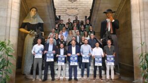 El alcalde de Palma, Jaime Martínez Llabrés; el teniente de alcalde de Cultura i Esports, Javier Bonet, han presentado este martes, en la sala de plenos del Ajuntament, el 53 Trofeu Ciutat de Palma de Bàsquet que enfrentará a los dos conjuntos palmesanos de LEB Plata. 92