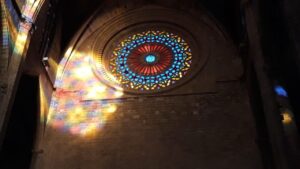 La Catedral de Mallorca acogerá el próximo sábado la ‘Festa de la llum’, un efecto lumínico en el que el rosetón monumental que preside el altar mayor se proyecta, con todos sus colores, sobre la parte interna de la fachada principal. 161
