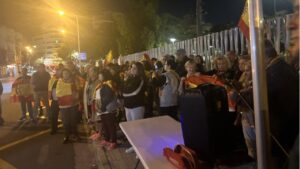 Entre unas 150 y 200 personas, según la entidad convocante, Foro Baleares, se ha concentrado este viernes, ante la sede de la Comandancia de la Guardia Civil en Baleares, ubicada en Palma. 205