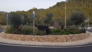 Las cabras salvajes de Andratx van camino de convertirse en las famosas de la isla. Tras invadir arcenes, carreteras e incluso jardines en busca de comida, los intrépidos animales han sido inmortalizados este jueves en la rotonda que unifica Camp de Mar con el puerto de la localidad. 316
