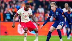 El delantero del RCD Mallorca, Cyre Larin, ha sido titular este jueves por la noche con una selección canadiense que ha sido goleada en Róterdam por la neerlandesa (4-0) en un encuentro preparatorio para la Copa América y Eurocopa, respectivamente. 75