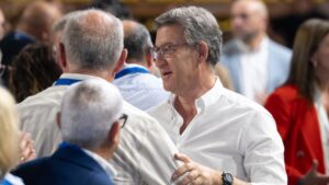 El líder del PP, Alberto Núñez Feijóo, ha insistido este sábado en el «chantaje» de Santiago Abascal, si bien ha defendido que las puertas de su partido están abiertas para «dejar entrar» a todos lo que quieran un cambio de Gobierno, entre ellos los que no entiendan la «deriva» de los dirigentes de Vox. 42
