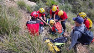 Una mujer, de 64 años de edad, ha tenido que ser rescatadas este sábado por parte de los Bomberos de Mallorca, en la zona de la playa de Es Caló, en Pollença, con una posible fractura de tibia y peroné. 146