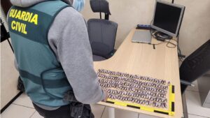 Dos hombres, de nacionalidad española y francesa, han sido detenidos por la Guardia Civil al intervenir los agentes de la Unidad de Análisis e Investigación Fiscal y de Fronteras un envío postal de 200 bellotas de hachís en el aeropuerto de Palma. 83