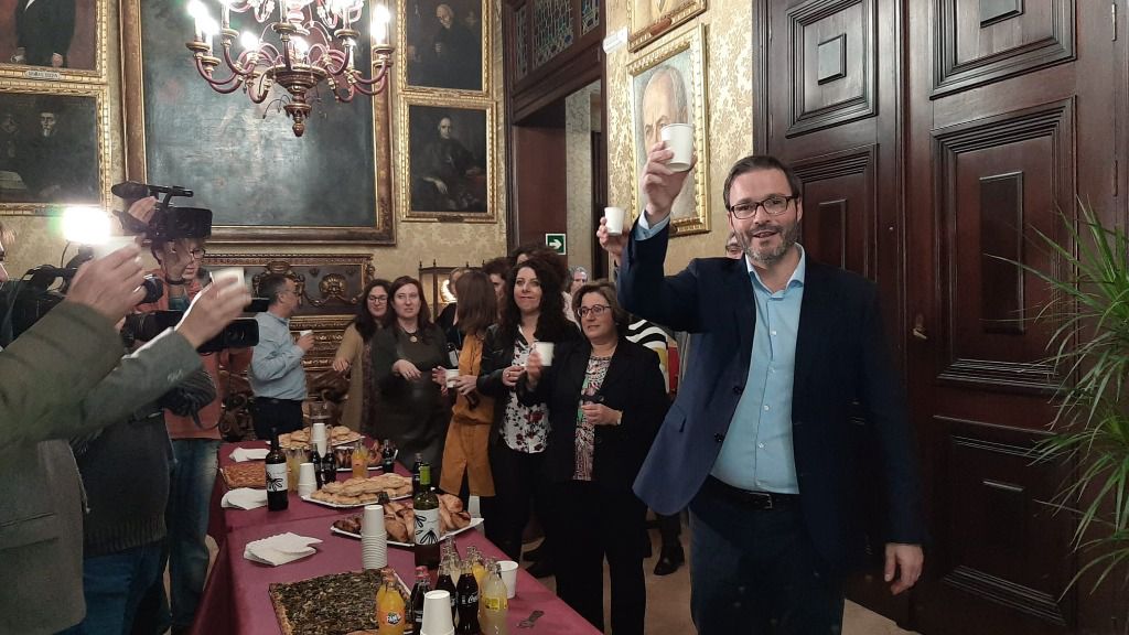 El alcalde de Palma, Jose Hila, y miembros de la corporación municipal han felicitado este martes la Navidad a los medios de comunicación. Para el alcalde, "en '2020 es un año ilusionante y de transformación, de apuesta por la sostenibilidad". "Des del ámbito local se puede dar ejemplo, queremos ser un ejemplo en sostenibilidad, por eso el 2020 estará marcado por las acciones que desarrollaremos para luchar contra en cambio climático". Además, también será un año "donde se mejorarán los servicios públicos, con autobuses nuevos y más policías".