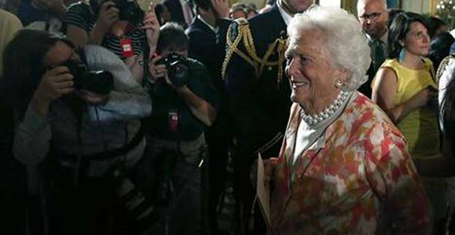 Barbara Bush, de 88 años de edad, fue internada el lunes en el hospital Metodista del Centro Médico de Texas, en Houston