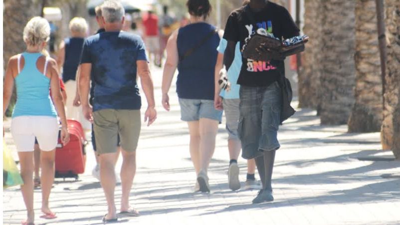 Los hechos ocurrieron este sábado a las 21.20 horas, cuando una unidad policial detectó a un vendedor ofreciendo bolsos, cinturones y pañuelos a los clientes de las terrazas de la zona.
