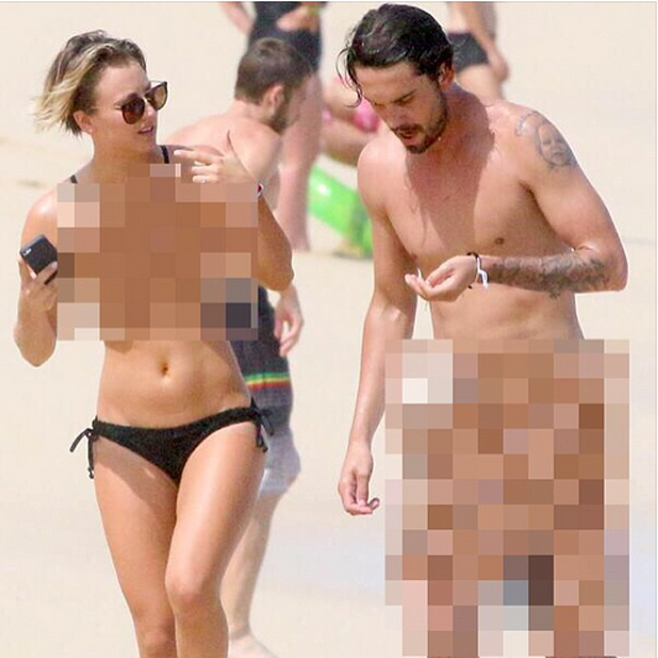 Muchas denuncias y enfados que no han tenido nada que ver con la reacción de Kaley Cuoco. La popular actriz de The Big Bang Theory y su marido, el tenista Ryan Sweeting, han decidido tomarse con humor esta filtración y publicar en sus cuentas de Instagram una foto desnudos en la playa, eso sí, pixelada con el comentario: "Qué divertido día tuvimos, disfrutando con mi marido de las playas de México. ¿Parece que se nos olvidó algo?".