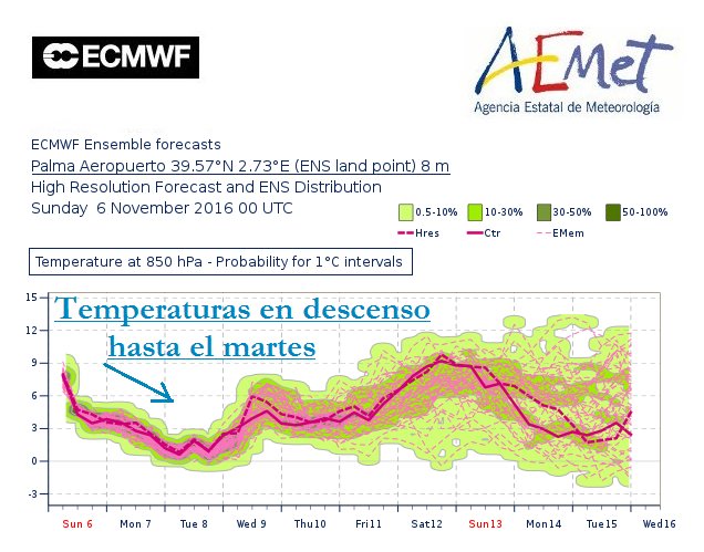 Temperaturas nocturnas en descenso, excepto en Menorca, con mínimas entre 4 y 11 grados, y diurnas en ascenso, con máximas entre 17 y 19 grados. Vientos del oeste entre 15 y 35 km/h. En la Tramuntana se prevé posibilidad de rachas de hasta 80 km/h.
