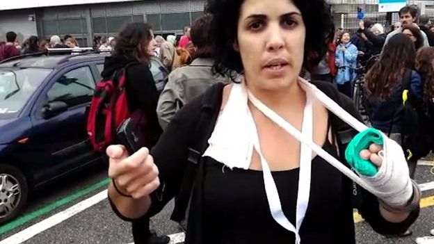 Se trata de Marta Torrecillas y es una de las protagonistas mediáticas de la violencia derivada de las cargas policiales del referéndum del 1-O. Su testimonio indignó a la ciudadanía por la crudeza de los hechos pero un día después, asistió a un programa de TV3 junto con otras personas heridas, y ahí matizó los hechos: los agentes la «inhabilitaron» para expulsarla del colegio.