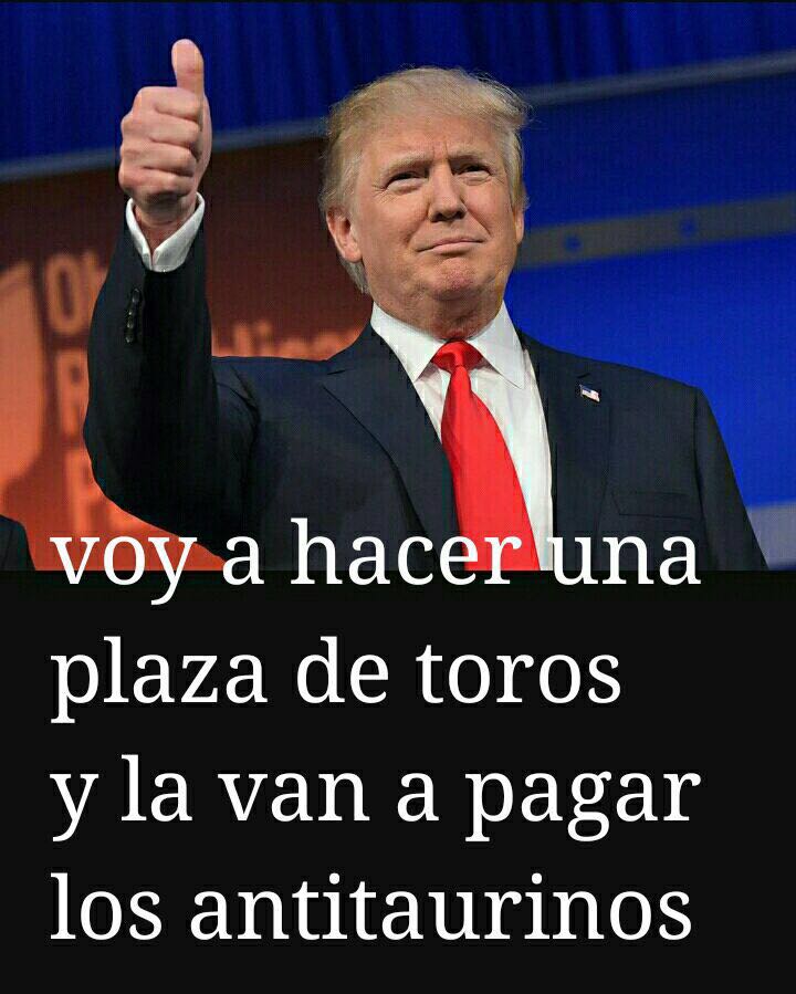 Donald Trump quiere que los mexicanos paguen el muro fronterizo para separar México de Estados Unidos a pesar de que es una medida contraria a ellos. ¿Qué ocurriría si Donald Trump quisiera construir una plaza de toros? Es evidente: Buscaría que la pagasen los antitaurinos. Un negocio redondo.