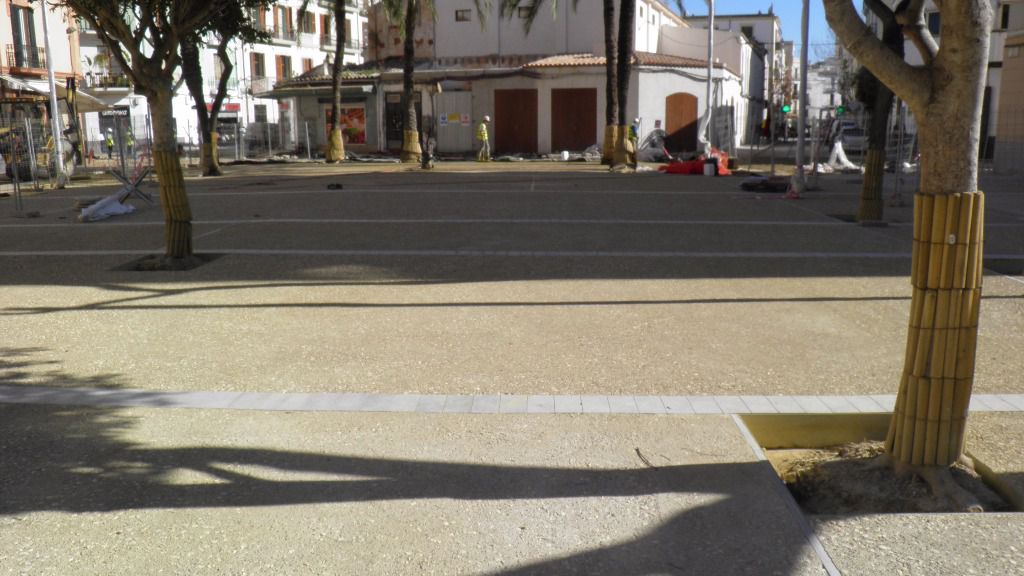 Las obras de peatonalización de Vara de Rey y alrededores, continúan con el calendario previsto y desde el Ayuntamiento se mantienen los plazos que se marcaron desde un principio, que era finalizar el mes de mayo. Actualmente se está trabajando en la pavimentación de los laterales de Vara de Rey, en la pavimentación de las zonas de las terrazas de plaza del Parque y en el saneamiento en la calle Jaume I. El pavimento de la zona central de la plaza del Parque es de hormigón tintado y desactivado que deja a la vista los áridos que lo componen.