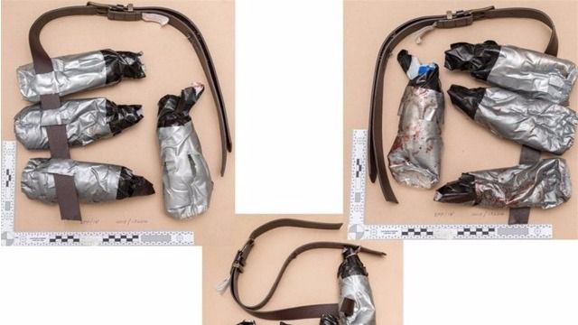 La Policía ha indicado que estas bombas falsas fueron fabricadas con botellas de agua, cinta adhesiva americana y cinta aislante, e iban unidas al cuerpo de los terroristas con cinturones para dar la apariencia de un chaleco explosivo.