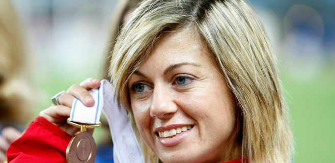 La atleta barcelonesa, que llegó a la meta por delante de la exvallista Miriam Alonso (1h28:34), se ha retirado de la competición como marchadora pero continúa practicando deporte en carreras sobre asfalto.