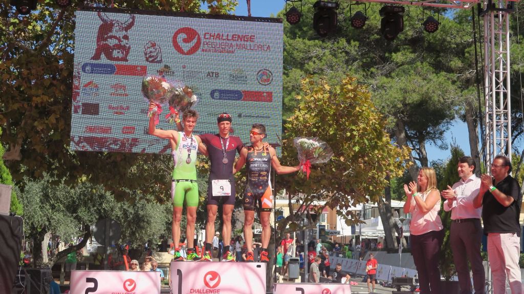 La segunda y la tercera plaza del podium fue cambiando de manos hasta el segmento de run, donde el austriaco Thomas Steger con un tiempo de 1:14:05 remontó hasta la segunda posición, y el catalán Iñaki Baldellou con un tiempo de 1:15:31 logró completar el podium.