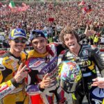 Todo saltó por los aires con la caída de 'Pecco' a falta de ocho vueltas, que allanó la victoria de Bezzecchi e hizo que Martín ganara una posición para ser segundo. El de San Sebastián de los Reyes todavía tuvo que pelearse con su mono, que llevaba desabrochado -y que podría conllevar una bandera negra si no conseguía subir la cremallera-, y eso permitió acercarse a 'El Diablo'; a pesar de que el galo logró pasarle en el giro final, tiró de garra para recuperar la posición y terminar segundo.